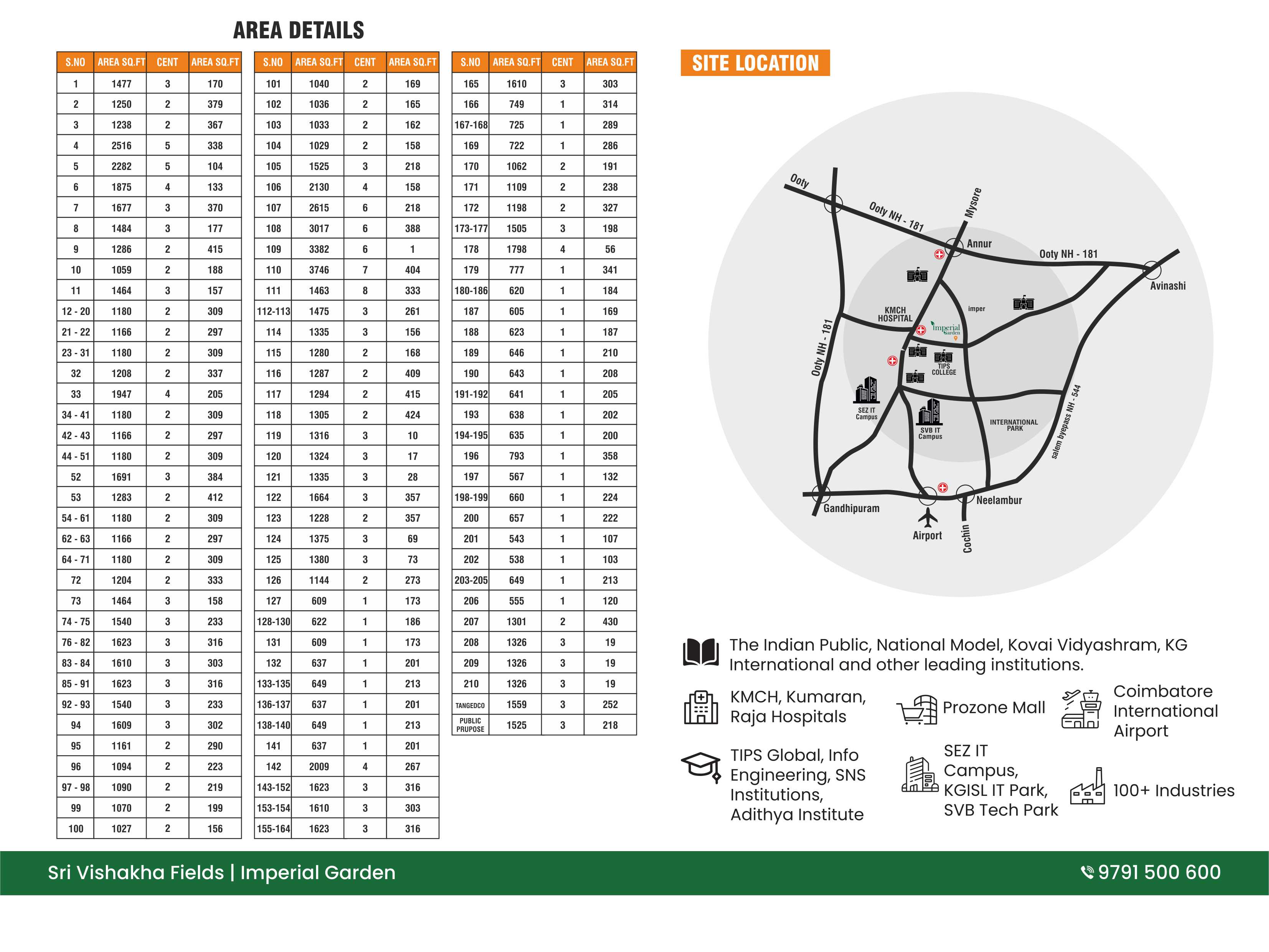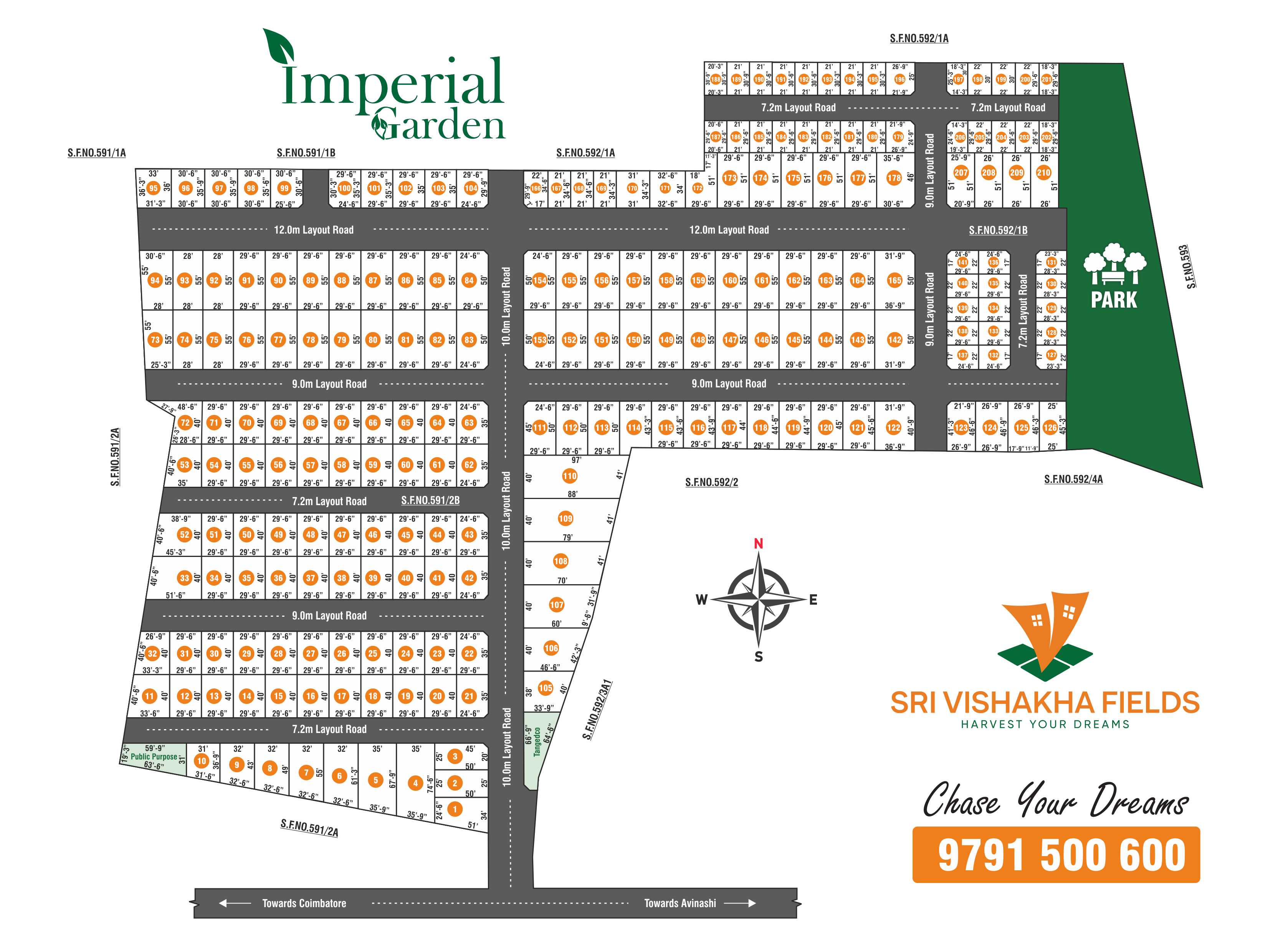Imperial Garden Located in Kovilpalayam, Coimbatore. Sri Vishakha Fields has converted a landscape to ready-to-build plots with all enhanced amenities to make people’s life easy. All our plots are 100% compliant with all DTCP requirements and specifications for residential and industrial plots. Imperial Garden being located near Indian Public Schools, KMCH hospitals and with in 15 Minutes of reach to social attractions and essential landmarks.